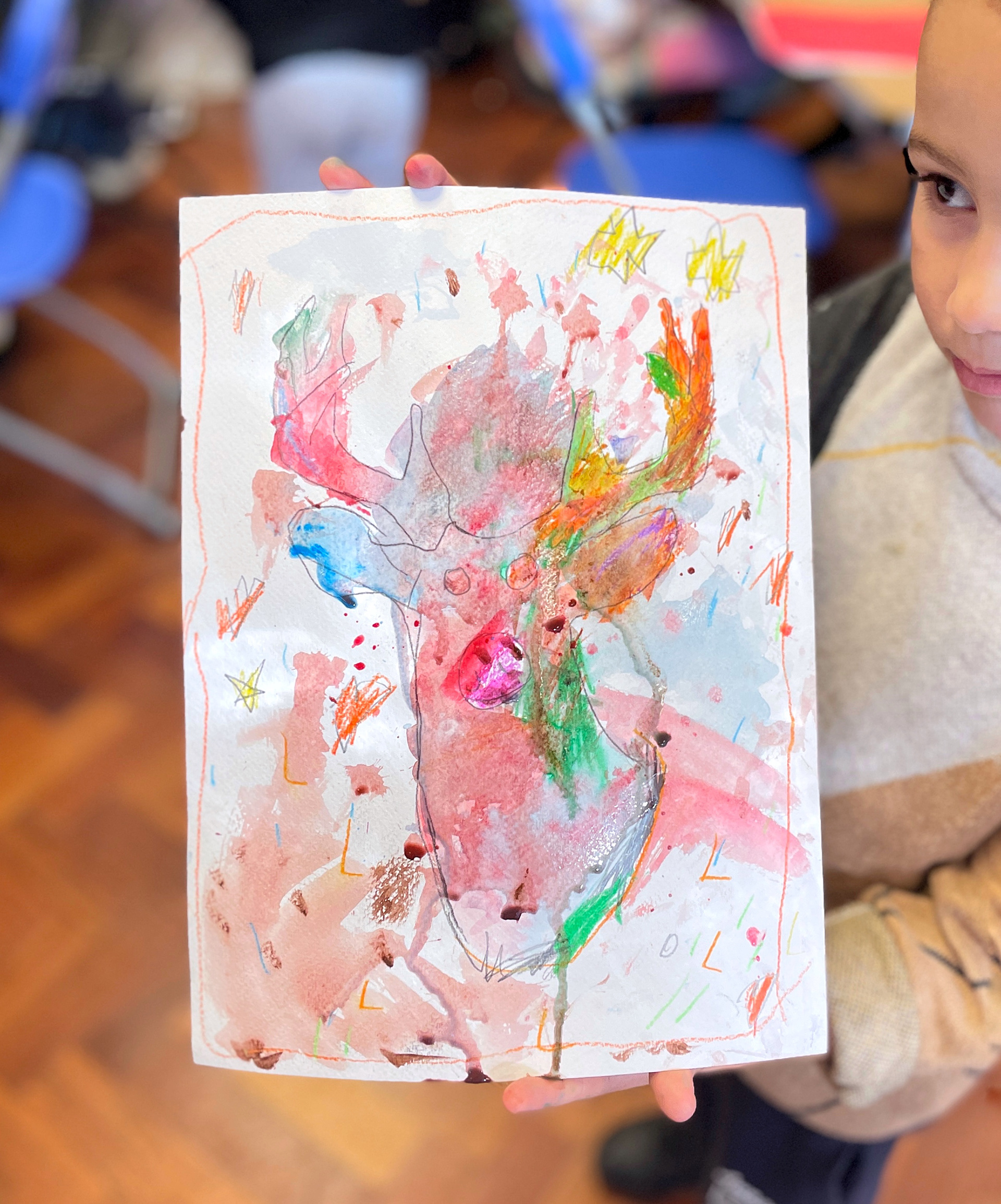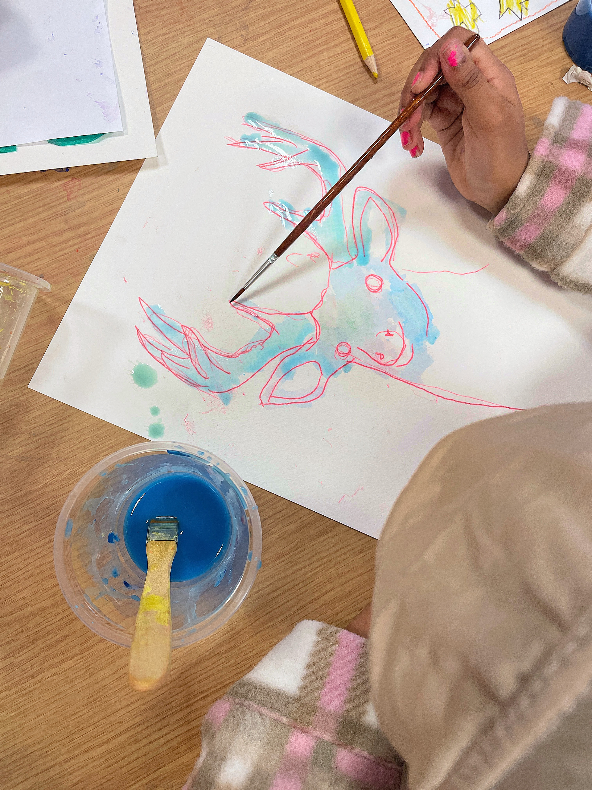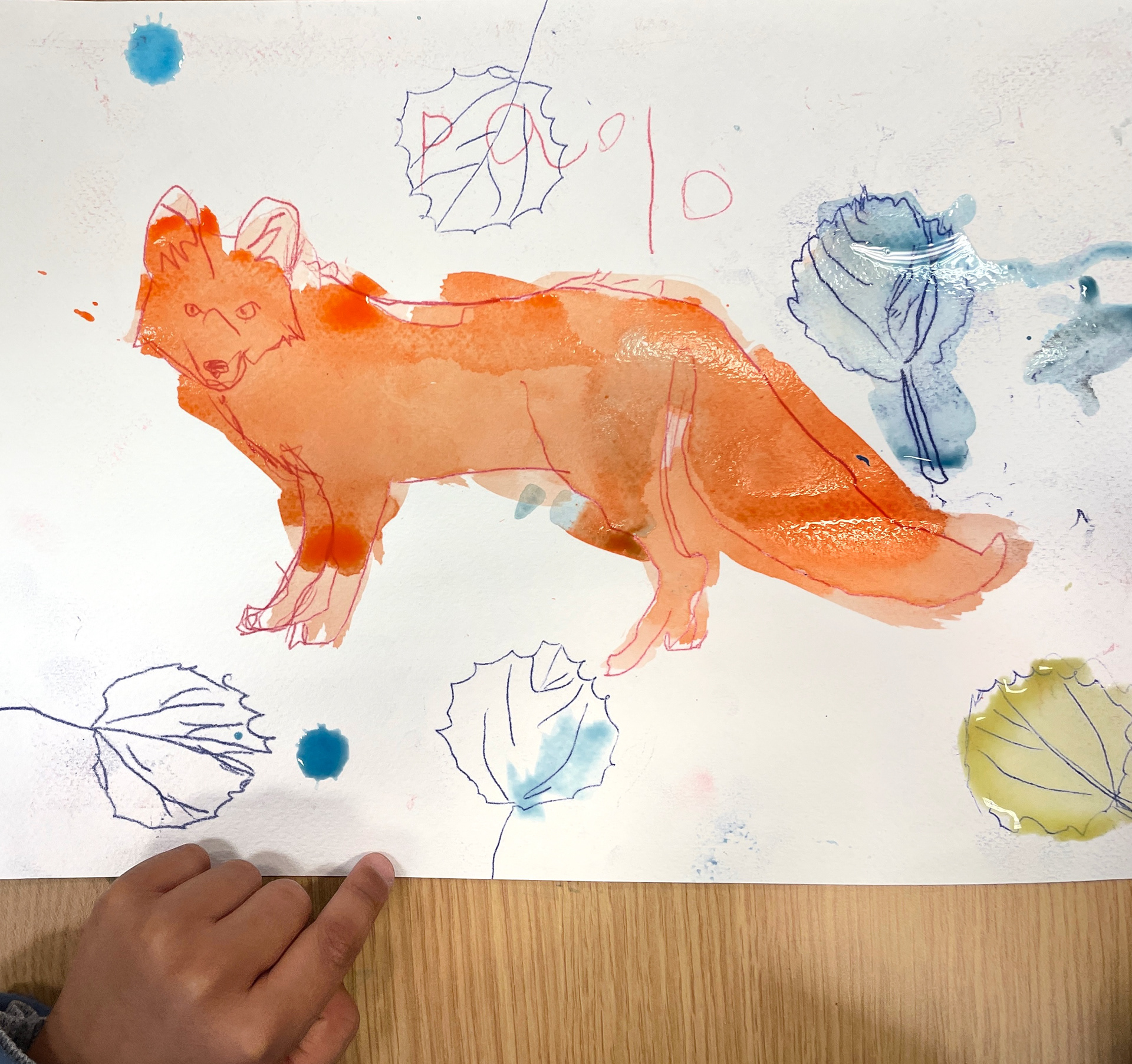 nature. Templates and carbon paper, colour pencils and watercolours.