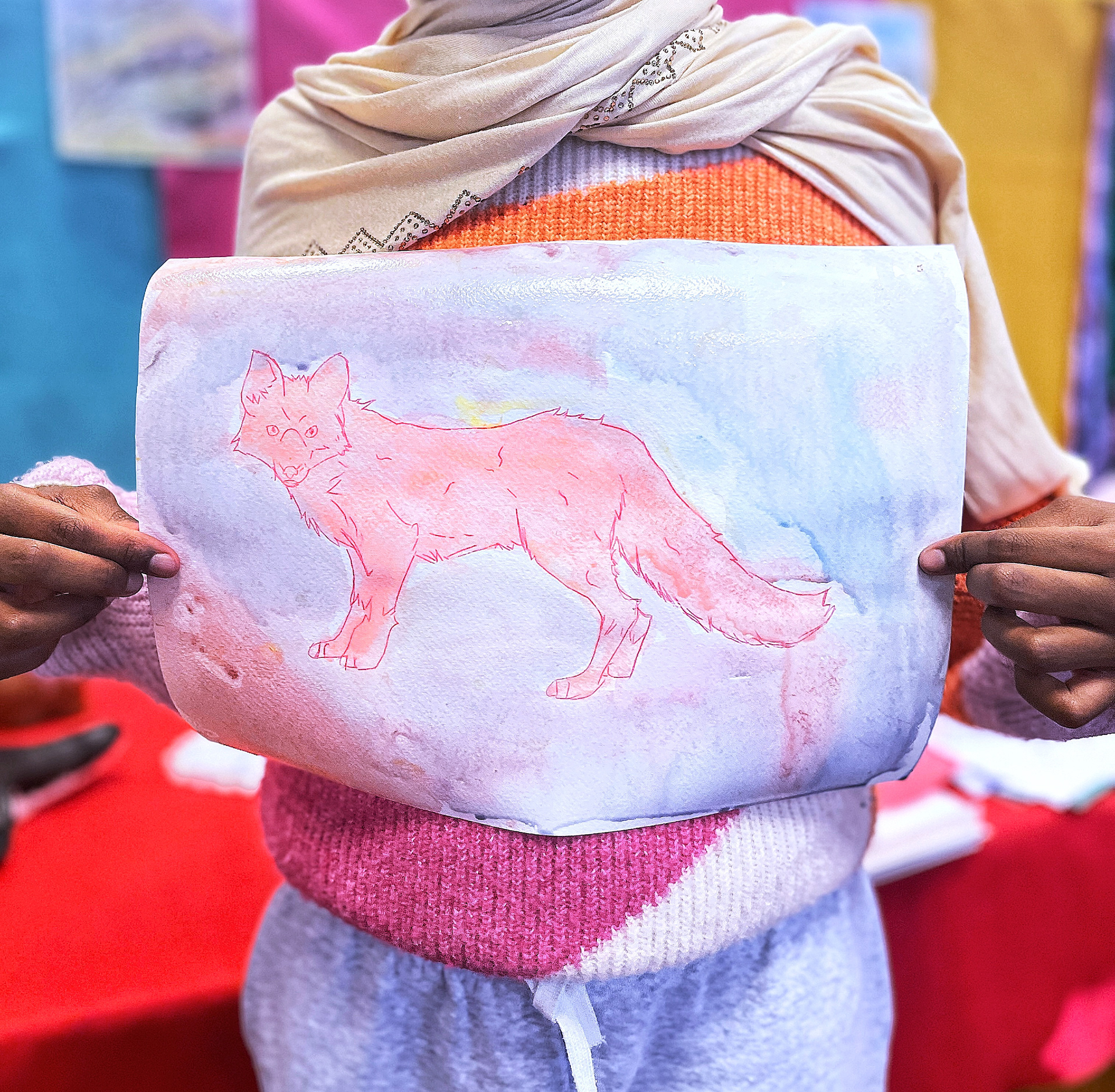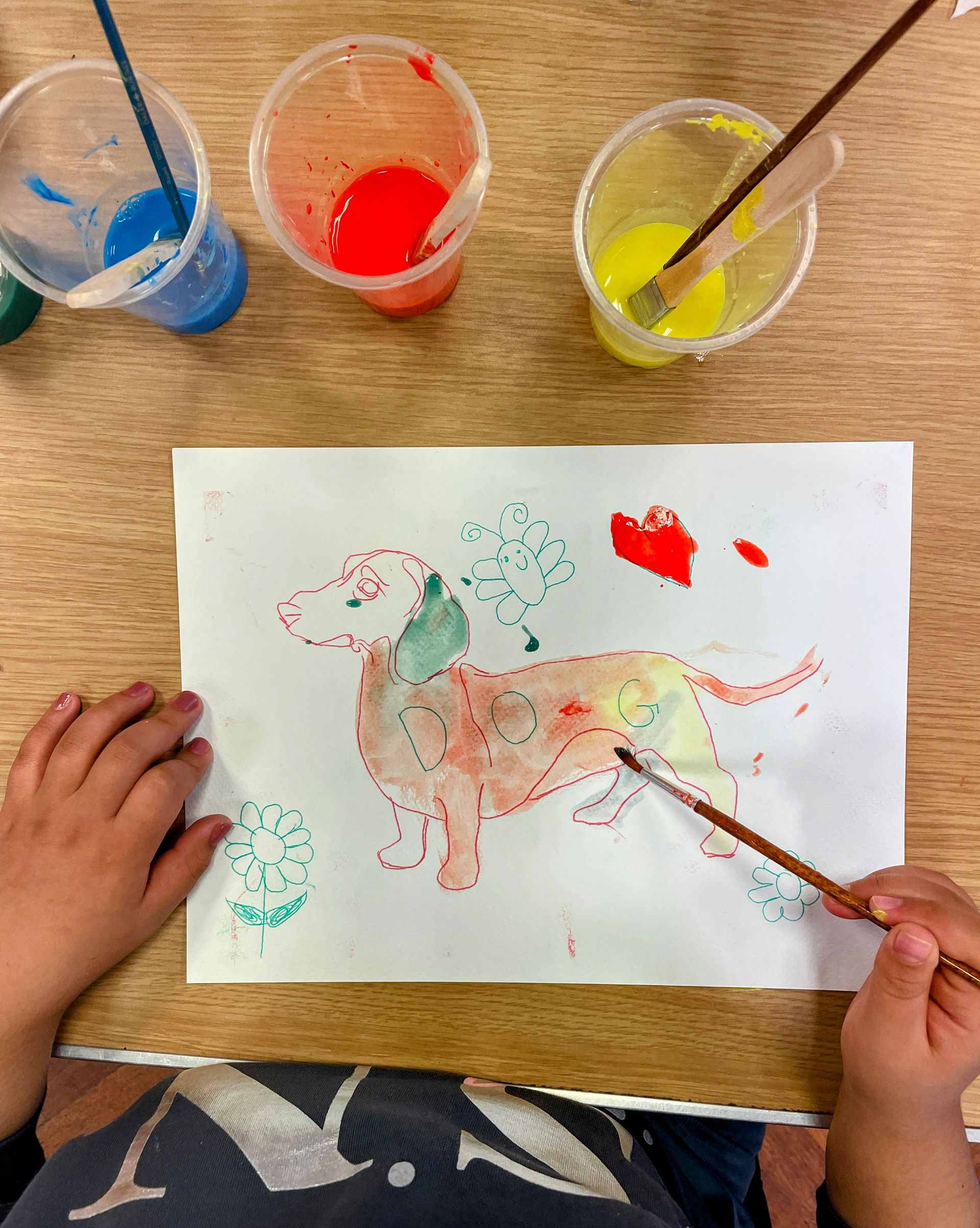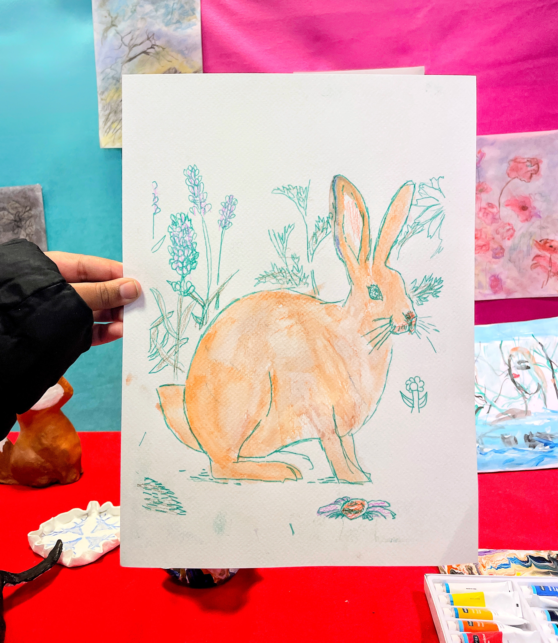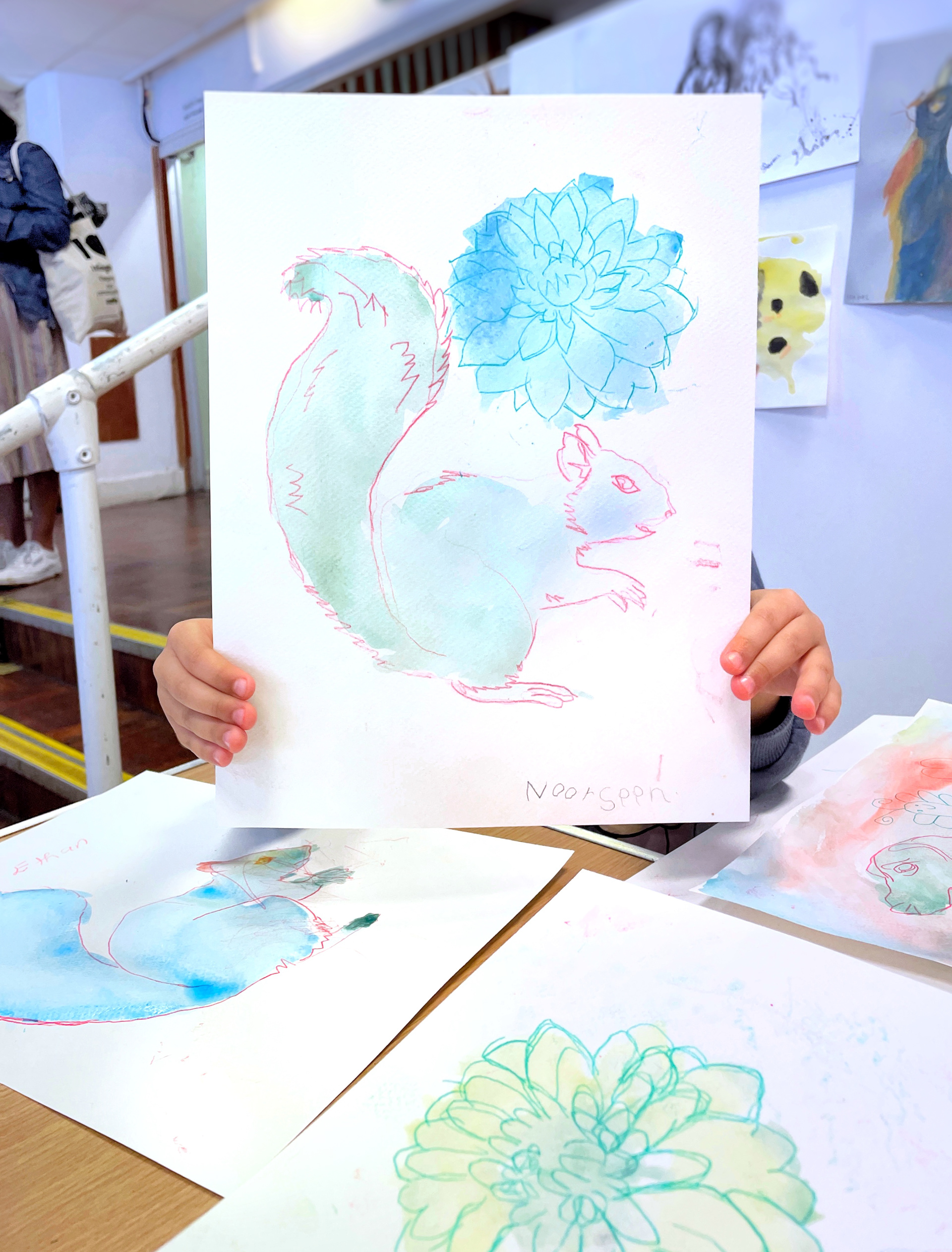 nature. Templates and carbon paper, colour pencils and watercolours.